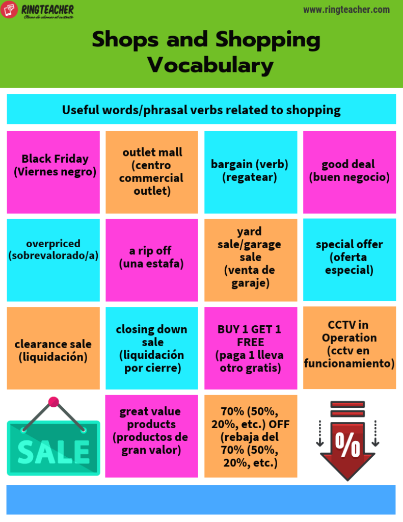 ¿Cuáles son algunas palabras en inglés relacionadas con las compras?